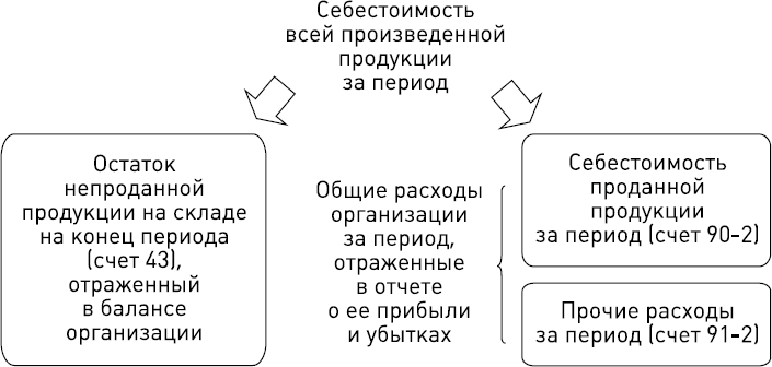 Взаимосвязь счетов 43, 90-2 и 91-2 показана на рис. 3–5.