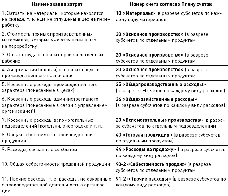 Таблица 3–1. Основные счета бухгалтерского учета для отражения затрат в производственных организациях
