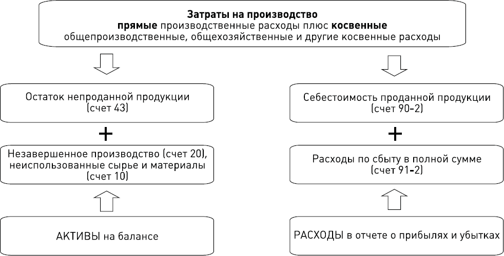 Основной компонент расходов для производственных организаций – себестоимость произведенной и проданной продукции. Если изготовленная продукция не продана, то ее себестоимость не может быть включена в состав расходов до момента ее продажи.