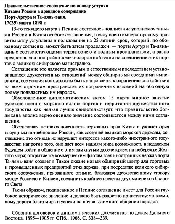 Сообщение по поводу уступки Китаем России Порт-Артура