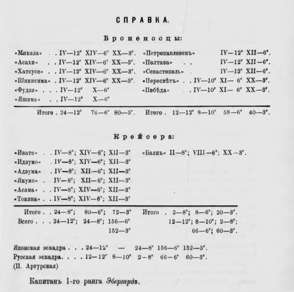 Справка Эбергарда о численности японской и русской (порт-артурской) эскадры на 04.02.1904 года
