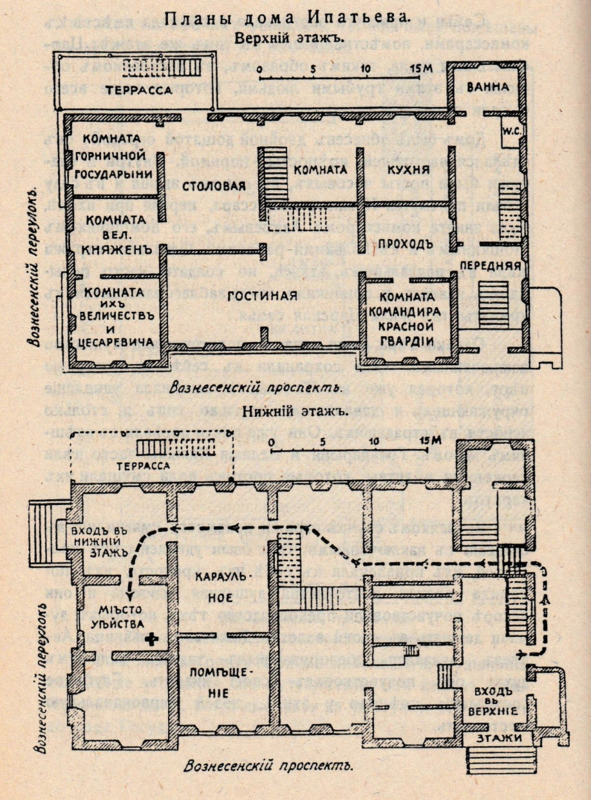Планы верхнего и нижнего этажей дома Ипатьева. Из книги Жильяра «Император Николай II и его семья»