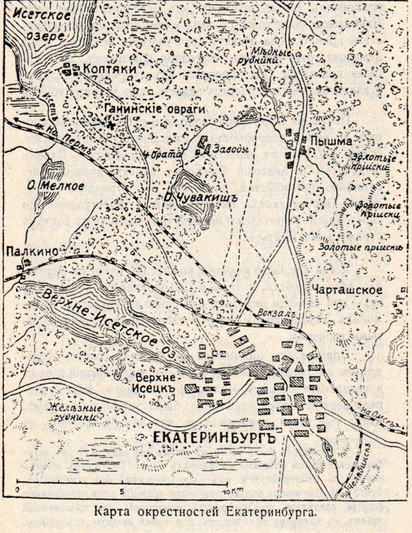 Карта окрестностей Екатеринбурга. Из книги Жильяра «Император Николай II и его семья»