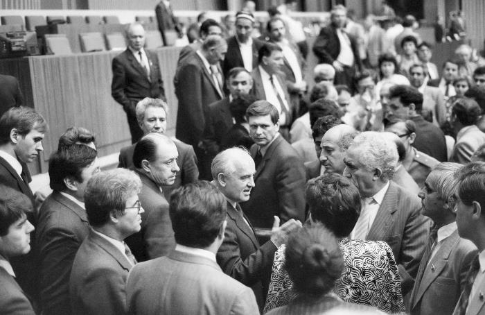 Президент СССР Михаил Горбачев с делегатами Армении в перерыве между заседаниями XVIII съезда КПСС. 11 июля 1990