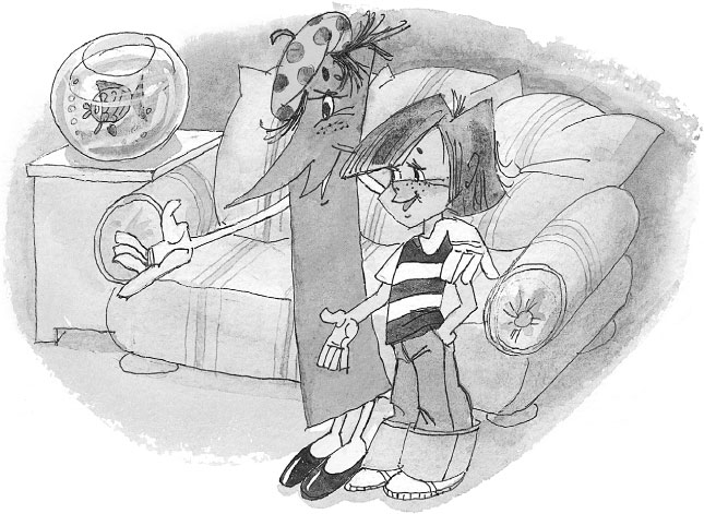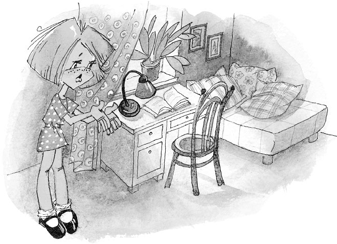 Ах да, так вот же он нарисован на картинке. Аля пригляделась и даже ойкнула от удивления. В учебнике математики на семьдесят седьмой странице была нарисована Антошкина комната, всё, как на самом деле есть, – и диван такой же, как у Антошки, и аквариум с красными меченосцами, и старая с книгами этажерка, ну, словом, всё-всё. И сам Антошка был тут же. Он ползал под столом на четвереньках. Аля его окликнула. Антошка обернулся. Никакого сомнения, это был её приятель Антон Водовозов, с которым они договорились сесть в классе рядом, даже если кому-нибудь и придёт в голову дразниться.