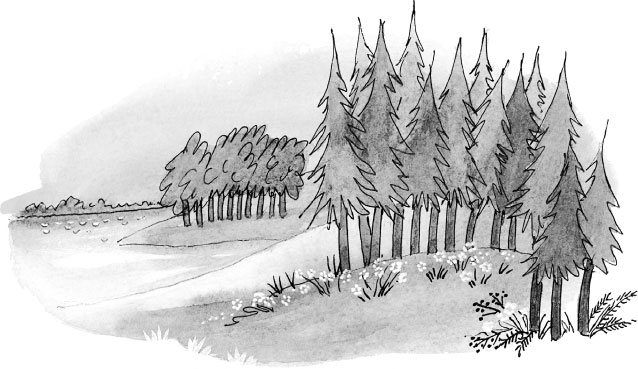 Антон тем временем вышел на дорогу, которая бежала через осиновую рощу. Дорога была странная – точно земля была сначала морем, а потом так и застыла в одночасье – волнами, потому что дорога шла то вниз, то вверх. На опушке росли четыре высоченные осины. Их большие, с тарелку, листья трепетали на ветру и шелестели, шелестели. Антону показалось, что они что-то шепчут. Он прислушался. Оказалось, они пели песенку: