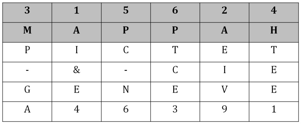 Дома Пьер бросился к столу и начал заполнять таблицу, используя ключ «МАРРАН» :