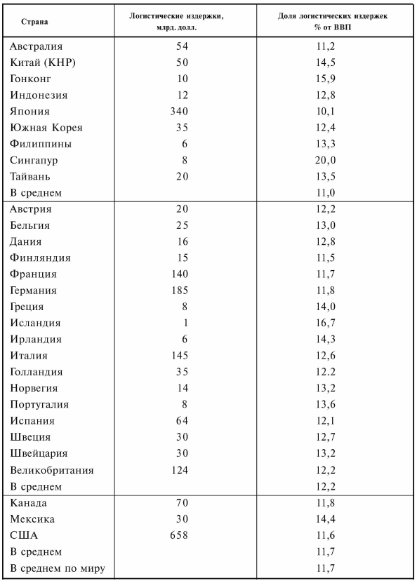 Источник: International Financial Statistics, Washington (D. C.) International Monetary Fund: Bowersox D.J., Closs D.J. Logistical Management. The Integrated Supply Chain Process. P. 128.