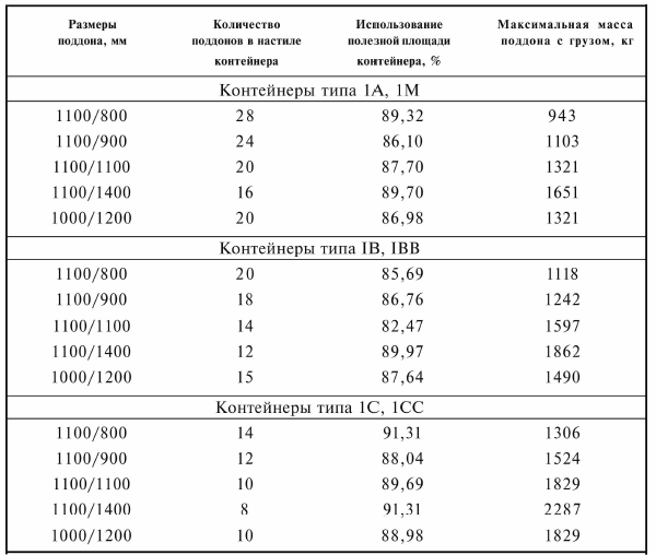 Международные стандартные размеры поддонов (паллетов) и их размещение в контейнере