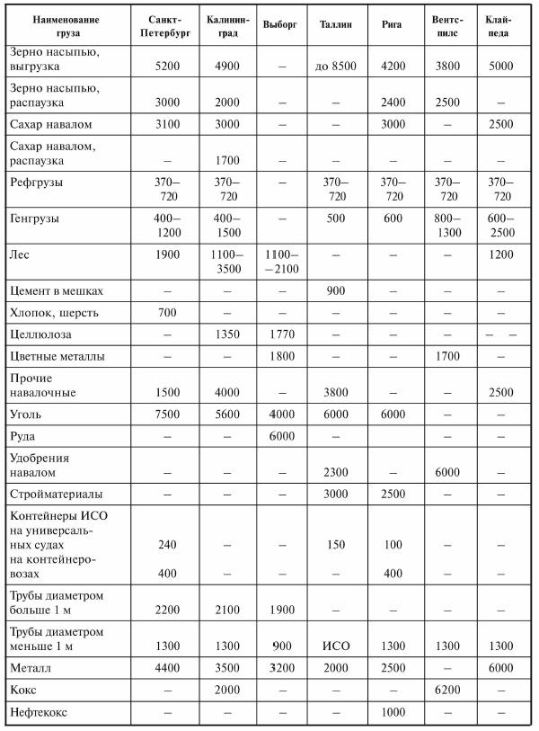 – нормы погрузки/выгрузки (для массовых грузов) в российских и иностранных портах;