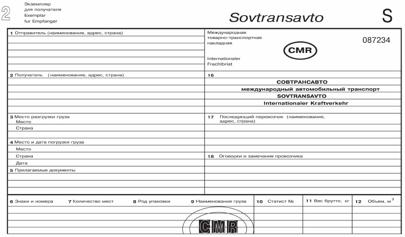 9. Договор перевозки устанавливается международной товарнотранспортной накладной, называемой в оперативной терминологии накладной ЦМР (CMR).