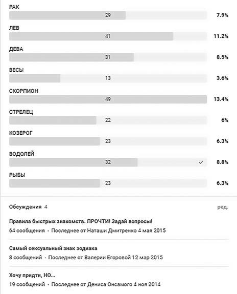 ♦ на главной странице сообщества они отображаются по три ссылки от самого первого обсуждения в группе и далее или, если в них идут активные обсуждения, располагаются от наиболее востребованного обсуждения (где кто-то оставил комментарий совсем недавно) до наименее востребованного; одну тему можно закрепить, чтобы она постоянно стояла первой в списке.