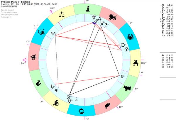 Итак, если мы видим две важнейших для карты планеты, которые соединены точным и значимым аспектом – это как раз то, что мы искали, это и будет важнейший аспект данной карты.
