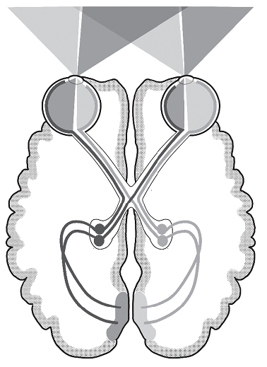Последний хитрый прием мы использовали, чтобы определить, как именно каждое полушарие участвует в разных способах понимания. Поступление информации от глаз в мозг устроено так, что все, что исходит с левой стороны от места, куда мы смотрим, сначала попадает в правое полушарие, и наоборот. Хотя оба полушария здорового мозга в дальнейшем делятся информацией друг с другом, разница в скорости и закономерностях реакции на слова, показанные на экране слева или справа, снабжает нас важнейшими сведениями о том, как каждое полушарие обработало прочитанные фразы.