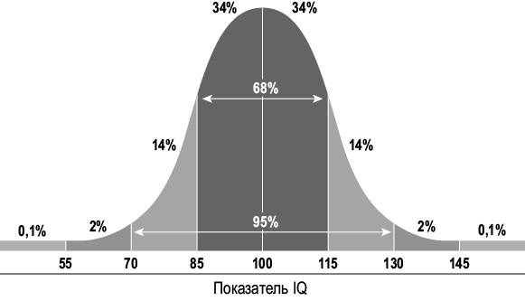 Писательница Мэрилин вос Савант (родилась в 1946 году в Сент-Луисе, штат Миссури) имеет самый высокий IQ из когда-либо зарегистрированных – 228. На иллюстрации 2.1 показано распределение оценок IQ среди населения. Данное распределение образует естественную колоколообразную кривую, и при этом у 68 процентов населения величина iq находится в пределах от 85 до 115. Мэрилин вос Савант со своими 228 баллами вообще выбивается из графика, и это явная аномалия.