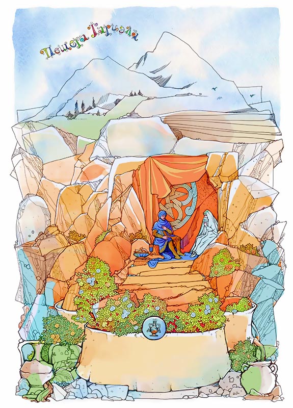 – Мы оказались, – промолвил Тариэл, выходя вместе с Автандилом из пещеры, где длилось всё предыдущее повествование, – в безлюдном ненаселённом краю. У наших ног протекала быстрая речка, крутая тропинка вилась от неё между скал ввысь к широкой горной площадке с росшим на ней деревом алоэ, а за ним зиял вход в огромную пещеру.