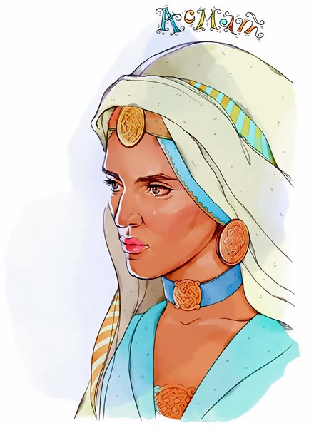 «Но для начала, – сказала Асмат, – я сварю лечебный бальзам из листьев дерева алоэ, чтобы смазать твои раны, господин. А потом надо хоть как-нибудь залатать твою одежду: она вся изодрана в клочья».