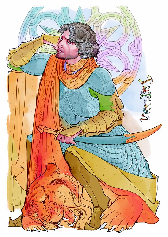 – Благодетель, – сказала возлюбленная дочь, – мне понятна твоя тревога. Но чем мучиться напрасными догадками, лучше пошли верных людей на поиски загадочного воина. Если он смертный человек, как мы с тобой, то со временем найдётся. Если нет – значит, дьявольское наваждение, и так тому и быть.