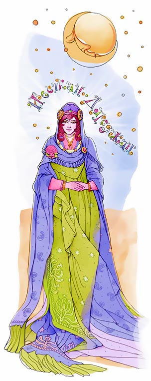 Они прошли мимо неусыпной стражи в сад, благоухающий ароматом дивных цветов, наполненный птичьим пением и шумом фонтанов, бьющих струями розовой воды, и, встреченные прислужницей, направились к покоям царевны. Асмат одёрнула занавесь, скрывавшую вход в комнату Нестан-Дареджан. Так Тариэл впервые в жизни увидел царскую дочь…
