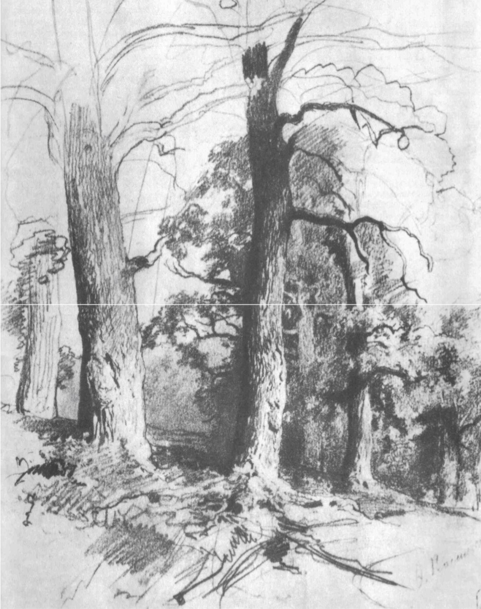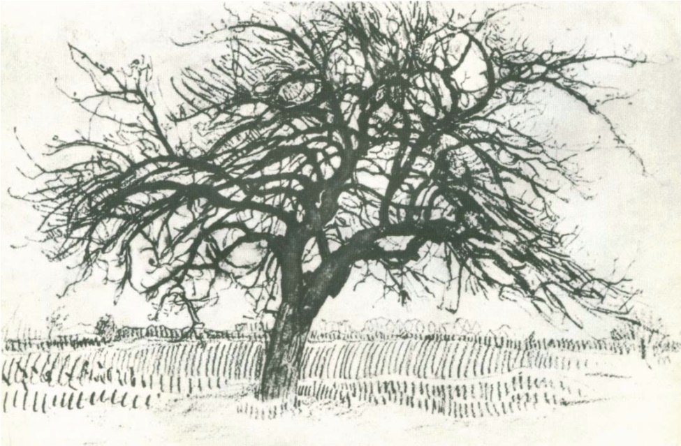 48-rasm. Qurigan daraxt qalam chizgisi.