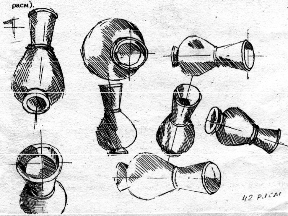 58– rasm. Gipsdan yasalgan vazani tasavvur asosida turli holatlarda chizish.