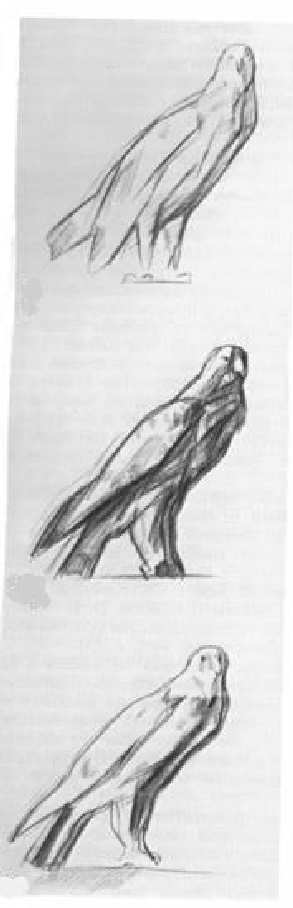 O‘quvchi asta-sekin tasvirlanayotgan shaklni ixcham va ifodali beruvchi fazoviy chiziqlarni aniqlab oladi. Bu chiziqlar tajribali rassom qо‘lida yoritish va shakl xarakteriga qarab ish davomida о‘zgaradi: bir joyda kuchayadi, boshqa joyda kuchsizlanadi, ba’zan yaqinlashadi, ba’zan uzoqlashadi yoki ishlatiluvchi materialning bor kuchida namoyon bо‘ladi.