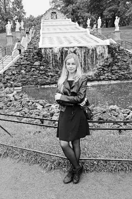 Ей 29, она работает в отделе менеджмента одной фармацевтической компании и одета в черную кожаную куртку, под которой носит черное платье, на плече у нее черная сумочка, на ногах – черные колготки и черные же ботинки. Облик уравновешивают ее светлые волосы и белый мобильник, который она не выпускает из рук. Ее меланхоличные глаза напоминают закатное петербургское осеннее небо – они такого же серо-голубого цвета.