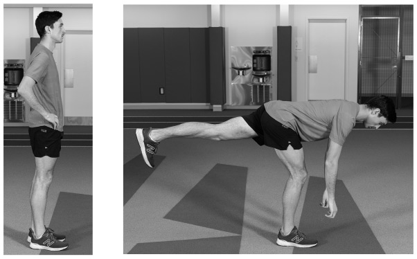 Как выполнять это упражнение. Отработайте технику движения, прежде чем добавлять вес. Перенесите вес тела на правую ногу. Держите колено чуть согнутым. Не двигая бедрами, отставьте ягодицы назад и прогнитесь вперед от талии. Опустите левую руку и поднимите левую ногу. Держите правую руку параллельно телу или вытяните ее для сохранения равновесия.