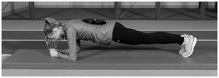 Как выполнять это упражнение. Встаньте в традиционную планку на предплечьях. После того как вы приняли исходное положение, попросите кого-нибудь положить вам на спину отягощение, чтобы было сложнее удерживать планку. Вес должен быть достаточным, чтобы усложнить выполнение упражнения. Однако если при этом спина прогибается, значит, вес слишком велик. Оставайтесь в таком положении 30–60 секунд.