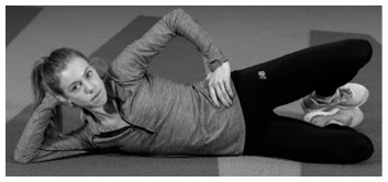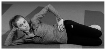 Как выполнять это упражнение. Лягте на правый бок, положив ноги одна на другую. Согните колени под углом 45 градусов. Бедра должны располагаться друг на друге. Подоприте голову согнутой в локте правой рукой. Левую руку поставьте на пояс, удерживая туловище в неподвижном состоянии. Активируйте мышцы пресса, втянув живот.