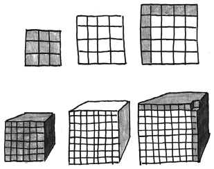 Рис. 2. Два квадрата можно сложить и получить еще один квадрат: 32 + 42 = 52. А вот из двух кубов точный куб не составить. Здесь, например, 63 + 83 = 93 – 1