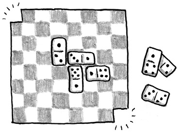 Рис. 3. Можно ли полностью замостить подпиленную шахматную доску костяшками домино?