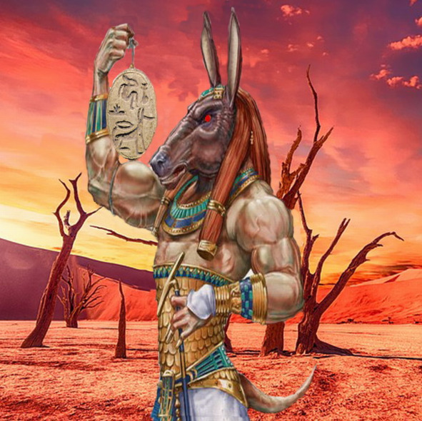 Так, своё самое распространённое имя – Сатана, он присвоил у «египецкого» Сет-Нахта, того самого шакало/осломордого Сета, регулярно колбасившего своего братца Озириса. Вон он, этот неприятный упырь негражданской наружности. Заметьте, крыльев ещё нет, но с мордой уже беда, да и уши торчат подозрительно рогато.