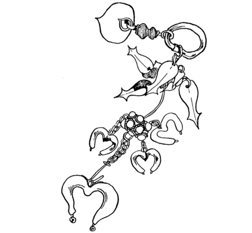 На ткани был изображен сад, полный света и мерцающей синевы. Между пестрыми цветами и травинками затаилась оранжевая змея с блестящими глазами-камушками; на безоблачном небе парила белая птица, окруженная маленькими полумесяцами из кусочков серебра, которые отбрасывали неземное сияние на сад внизу.