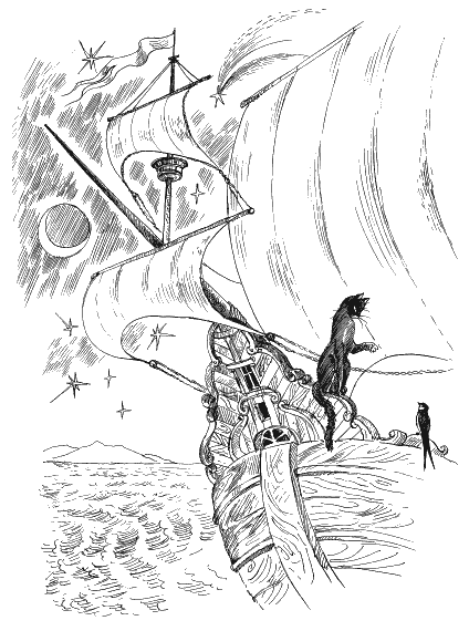 Мышонок попросил ее пошире разинуть пасть и ловко выпрыгнул на песок. Отряхнулся, почесался, пошевелил усами, вежливо пожелал счастливого плавания и, беспечно позванивая, отправился по своим делам. Вот почему Черная Кошка была в таком отвратительном настроении.