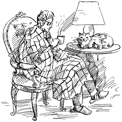 А между тем волшебник Алеша простудился и вот уже третий день сидел дома. Он надел на себя теплый халат, толстые, немного кусачие шерстяные носки и глубокие уютные тапки. И все равно ему было как-то зябко и холодно.