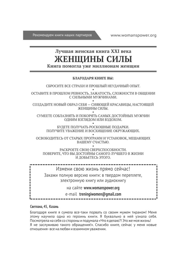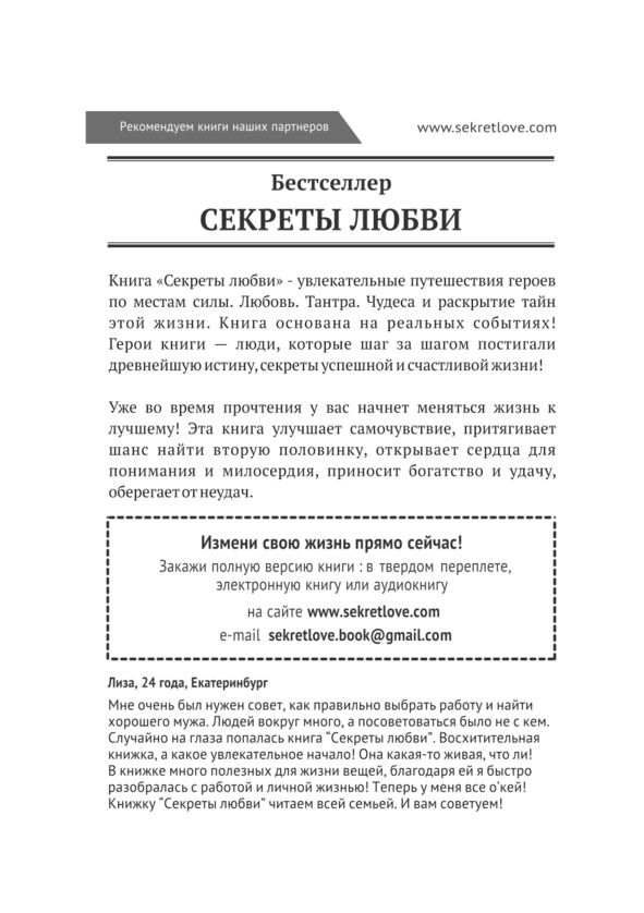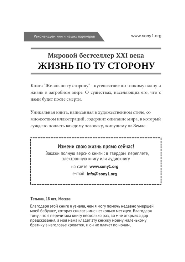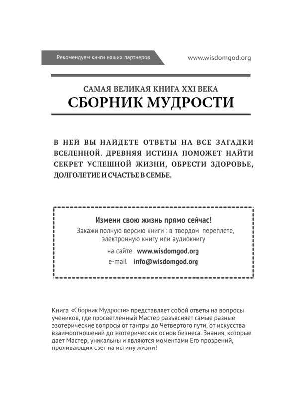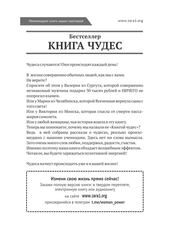 Если эта книга помогла Вам, то порекомендуйте ее 50-ти друзьям. Станьте для них лучиком света! Привнесите в наш общий дом добро, любовь.