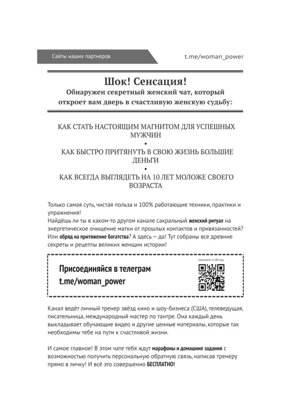 Внимание! Эта книга имеет специальный код. Чем больше раз вы перечитаете эту книгу, тем быстрее решатся все ваши проблемы!