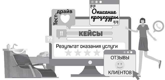 • Отзывы клиентов. Это позволяет потрогать услуги чужими руками. В подавляющем большинстве случаев именно отзывы помогают принять решение, совершить ли тот самый прыжок доверия: попытаться воспользоваться какими-то услугами или воздержаться от риска. Но на этом я остановлюсь в отдельной главе.