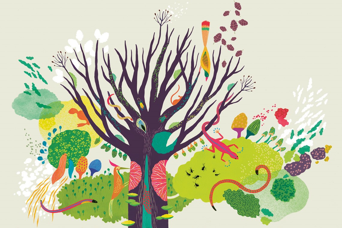 Затем на дереве появляются мелкие млекопитающие, птицы и рептилии. Белки, дятлы и ящерицы строят гнёзда внутри полых стволов, запасают пищу в щелях и охотятся на других обитателей дерева.