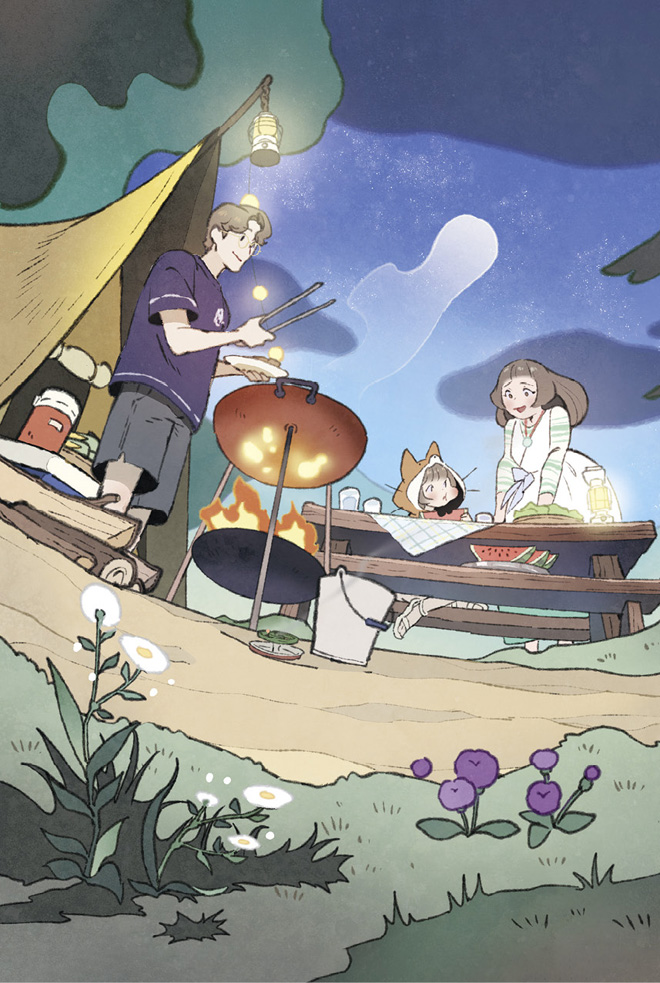 В выходные мы всей семьёй отправились на природу, чтобы пожарить ароматное мясо под усыпанным звёздами небом.