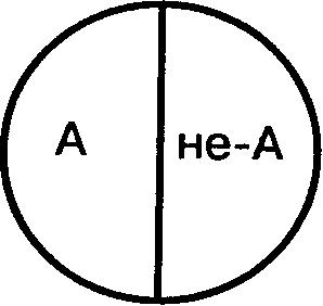 В разделе о законах логики уже говорилось об отношении противоречия и противоположности между высказываниями. Такие отношения возможны и между понятиями. Противоречащими называются понятия, когда у одного из них имеется тот или иной признак, а у другого он отрицается (признак вообще-то отмечается в содержании того и другого, но по-разному). Например, «белый» – «небелый», «добрый» – «недобрый». Для них характерно, что они делят весь массив родственных предметов и явлений строго на две части: на тех, что обладают данным признаком, и тех, которые его не имеют; ничего промежуточного между ними, как легко догадаться, не бывает (рис. 4). Именно поэтому их отношения регулируются логическим законом исключенного третьего.