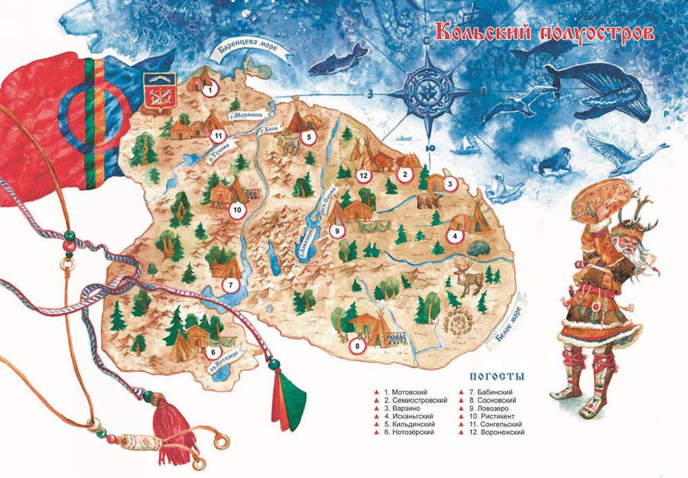Никто не знает, откуда саамы пришли на Кольский полуостров, но именно они считаются первыми жителями этого сурового края. В их честь была названа Лапландия, то есть «земля лопарей», включающая в себя владения Скандинавии, на которых проживали саамы. Об их землях рассказывается в карело-финском эпосе «Калевала» – в этой полусказочной стране нет ни солнца, ни луны, ни дневного света. На самом деле речь в древних книгах идёт, скорее всего, о полярной ночи и полярном дне, которые длятся почти по 40 дней.