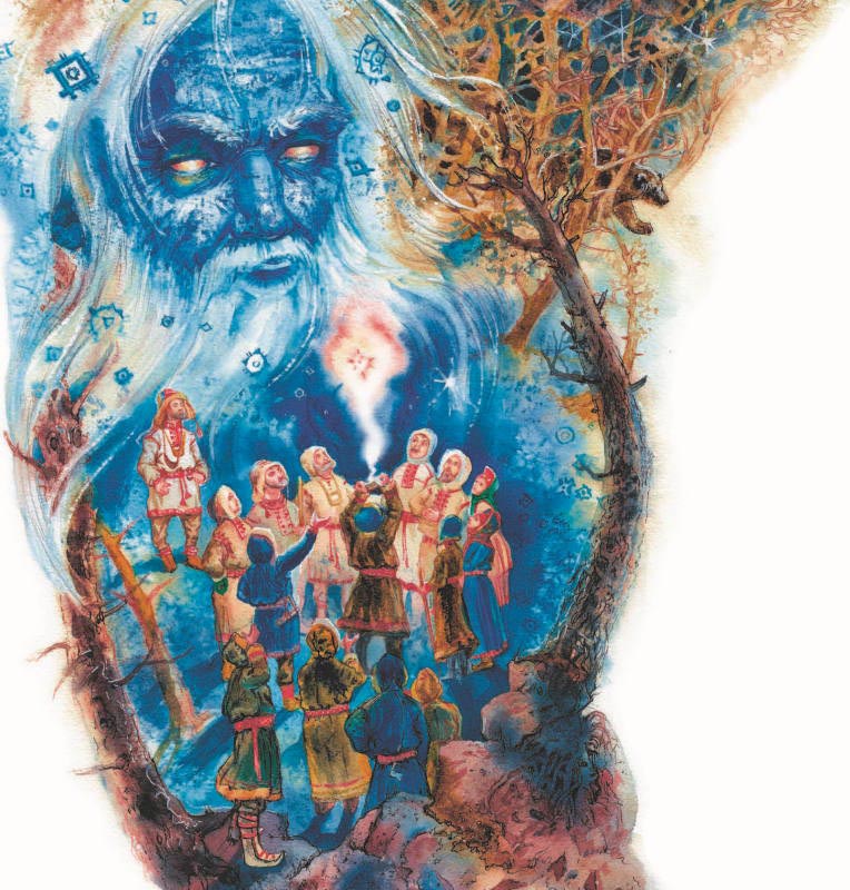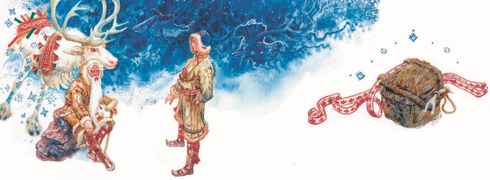 Скоро все забыли про мудрого старика. Только этот юноша один не забыл. Пошёл он туда, где олений ягель растёт, посмотрел на чёрное небо и сам себе говорит: