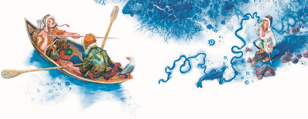 – Что ж, – говорят братья, – раз такое дело, рассиживать некогда. – Попрощались со стариками, бросились в свои лодки. Гребут вёслами что есть сил, на Салму торопятся, скорей, скорей, скорей…