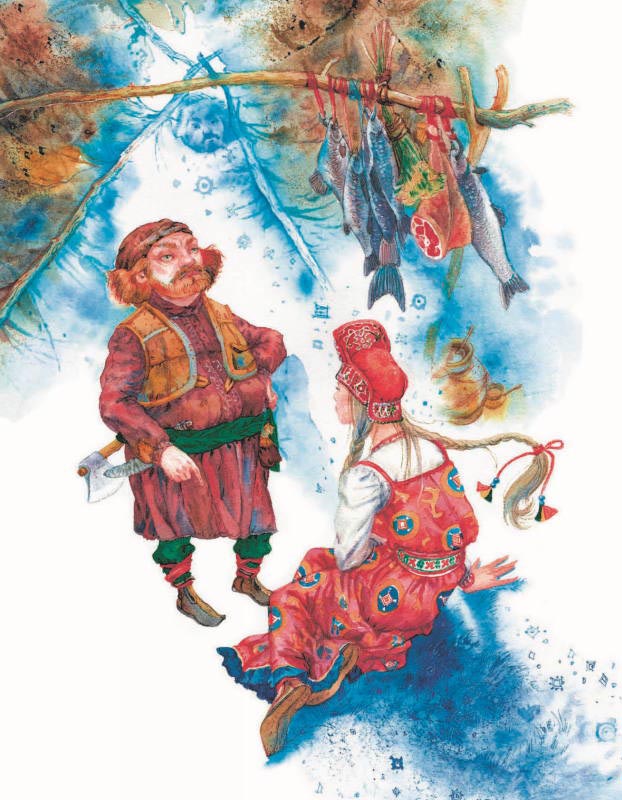 – Ладно, – сказал богатырь Ляйне. – Кто долго плачет, тот силу теряет. Не будем слёзы лить, пойдём злую чудь догонять. Скоро зима, чудь далеко не уйдёт, зима её остановит. Пойду следом я, найду Чудэ-Чуэрвя и убью его. И жену свою Воавр освобожу.