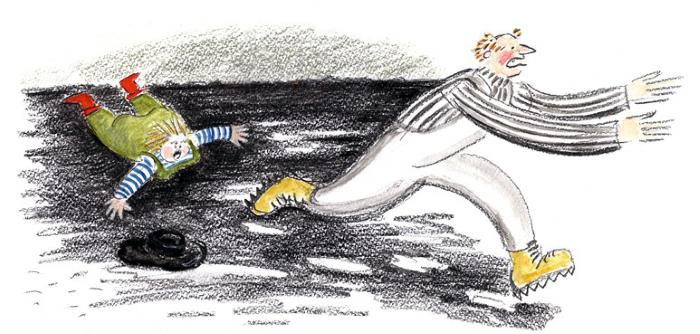 Но как же перепугался лис, когда на другое утро снова не увидел Криволапыча дома! Он осмотрел окрестности и уже в панике хотел будить Пекку, когда приятель, еле волоча покрытые грязью ноги, втащился в дом.