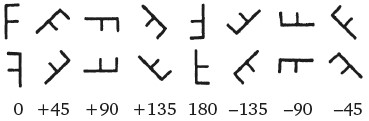 Обратите внимание: если бы испытуемые использовали нечто вроде словесных описаний формы букв, такие как «вертикальная ось, от которой вправо отходят один горизонтальный сегмент сверху и один горизонтальный сегмент от середины», результаты бы значительно отличались. Среди всех перевернутых букв быстрее всего должны были бы распознаваться буквы, повернутые на 180°, так как их переворот формулируется проще всего: в исходном словесном описании надо заменить «сверху» на «снизу» и наоборот, а также «вправо» на «влево» – так можно получить описание новой фигуры и сравнить ее с тем описанием исходной буквы, которое есть у нас в памяти. Буквы, наклоненные на 90°, распознавались бы медленнее, потому что слово «сверху» в определении буквы может меняться как на «справа», так и на «слева» в зависимости от того, как буквы отклоняются от исходной фигуры: по часовой стрелке или против. Решение для букв, расположенных по диагонали, принималось бы медленнее всего, так как каждое слово в описании должно быть заменено другим: «сверху» на «сверху справа» или «сверху слева» и так далее. Таким образом, по степени возрастания сложности распознавания буквы бы располагались так: 0°, 180°, 90°, 45°, 135°, что отличается от результатов, полученных Купер и Шепардом: 0°, 45°, 90°, 135°, 180°. Многие другие эксперименты также подтверждают идею о том, что визуальное мышление оперирует не языком, а ментальной графической системой, с помощью которой можно вращать, сканировать, увеличивать, панорамировать, перемещать и достраивать шаблоны.