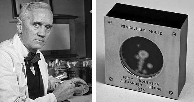 В 1928 году в больнице Святой Марии в Лондоне бактериолог Александр Флеминг случайно открыл пенициллин, когда выращивал бактерии стафилококка.