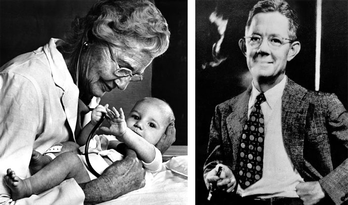 Рисунок 2.2: А. Доктор Хелен Тауссиг осматривает маленького пациента с врожденным пороком сердца. Б. Альфред Блэлок.